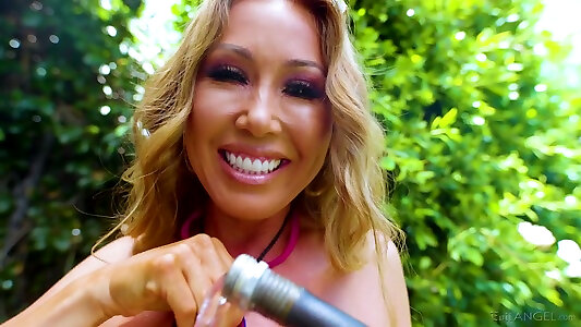 Big-chested Nekane plumbed fiercely in a doggy position outdoor