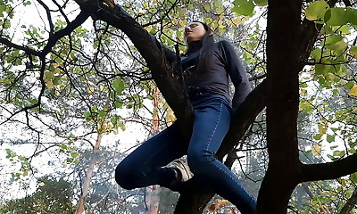Girl climbed a tree to rub her cooch on it - G/g-illusion